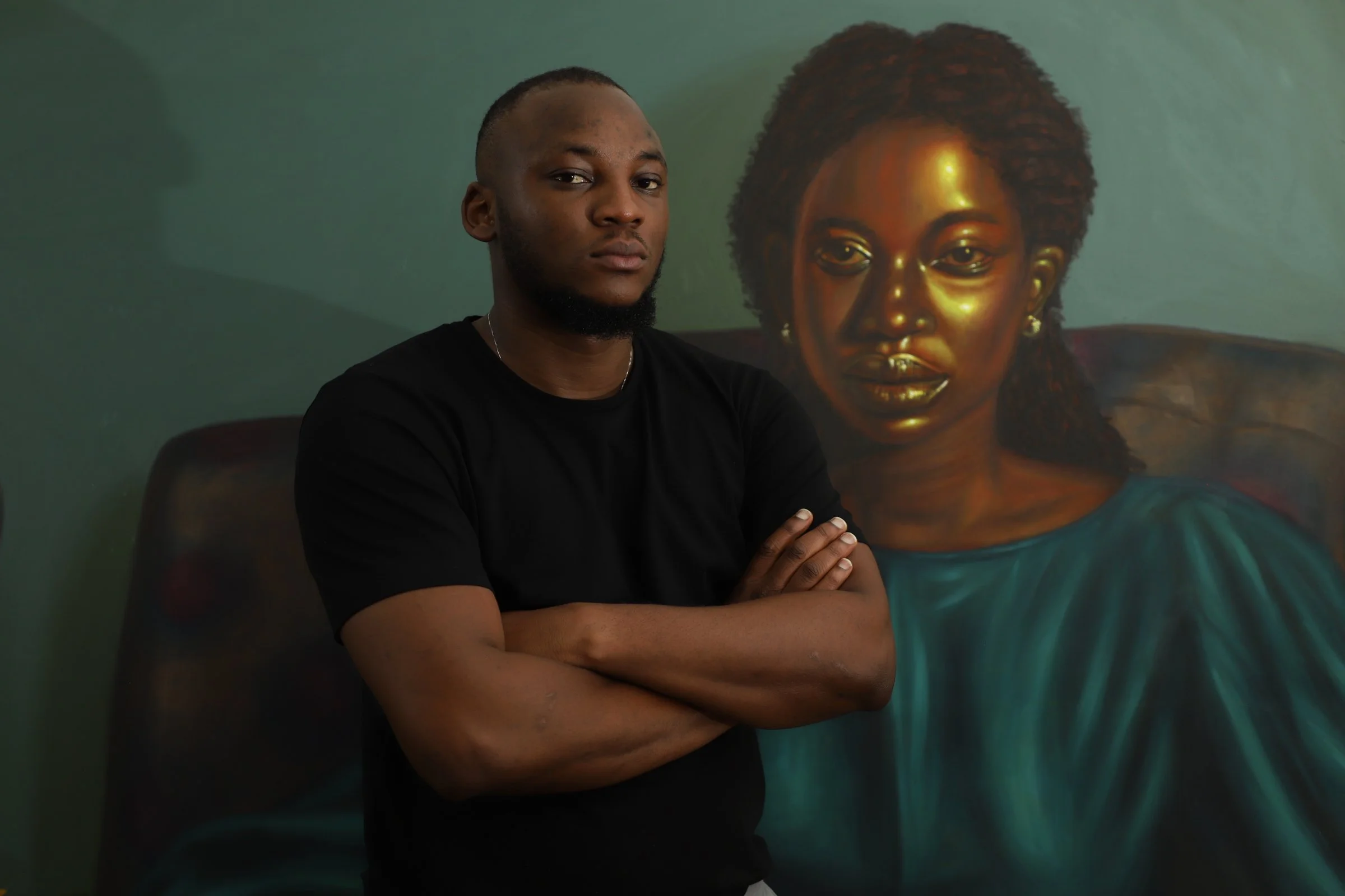 Mon dialogue intérieur guide ma manière de peindre. Pourquoi a-t-il été si important de soumettre l'homme noir, d'effacer toute forme de représentation africaine ? Ce sont des questions auxquelles je continue de réfléchir à travers mon travail. En pensant à notre histoire et nos cultures riches, alors que le commerce des esclaves a été surtout enseigné, c'est la seule histoire de l'homme noir et ce n'est pas de là que nous venons. Dans mon travail, je cherche des personnes qui portent une histoire que je veux raconter. Et pour moi, cela a été facile car chaque Africain porte des histoires similaires, chaque Nigérian porte des histoires similaires et si je peins un Nigérian, je peins aussi mon histoire. Nous ne sommes que des miroirs les uns des autres, nous venons tous des mêmes gouvernements oppressifs, des mêmes systèmes et chacun traverse les mêmes luttes, mais dans des dynamiques différentes. Je suis tout ce que j'ai peint.